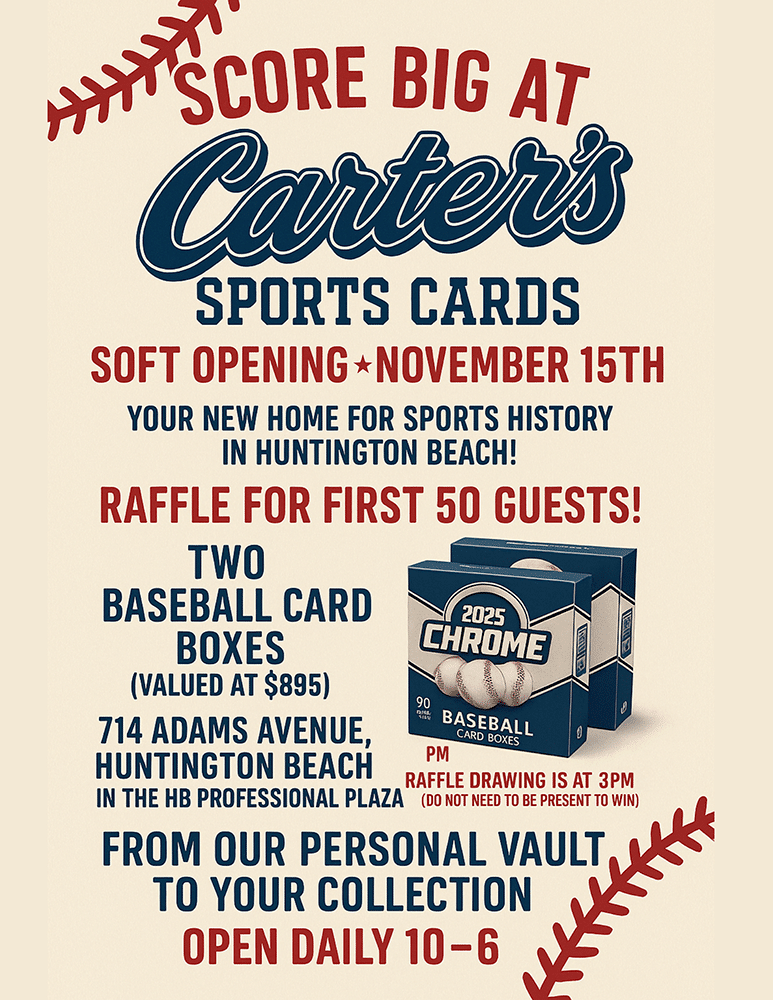 Discover vintage treasures, modern hits, and exclusive collectibles — all in one place at Carter’s Sports Cards in Huntington Beach.